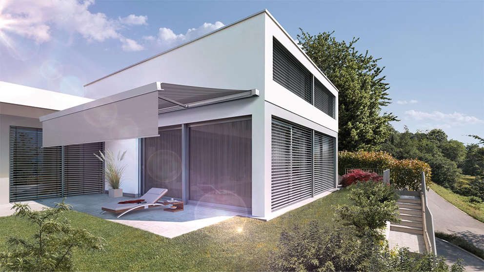Genießen Sie Tageslicht und Privatsphäre gleichermaßen. Mit WAREMA Raffstoren schaffen Sie in Ihrem Zuhause oder im Büro ein Ambiente, in dem Sie sich rundum wohlfühlen. Individuell einstellbare Lamellenwinkel ermöglichen Ihnen dabei sowohl die Steuerung des Sonnenlichteinfalls nach Ihren Wünschen als auch Schutz vor unerwünschten Blicken. Finden Sie hier genau die Außenjalousie, die zu den individuellen architektonischen Anforderungen Ihrer Fassade passt. Auch Sonderformen sind für uns kein Problem.